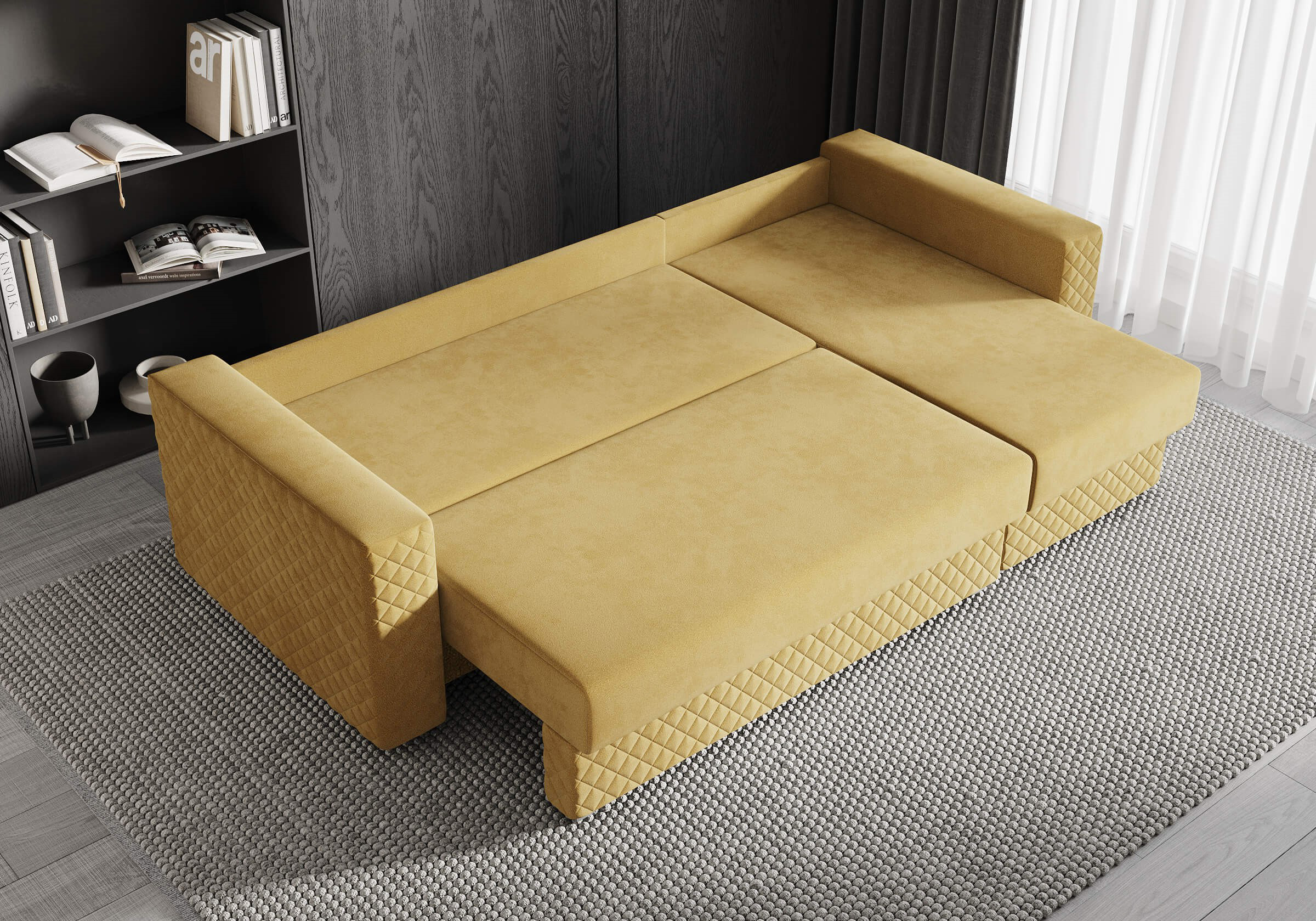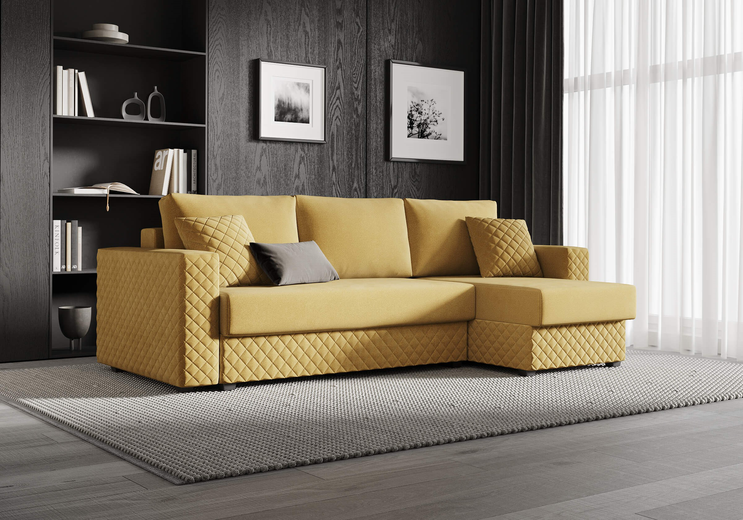 Декоративная стёжка подчёркивает строгие, геометрические формы дивана, придавая ему стильный и современный вид.